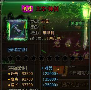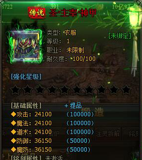 2:目前装备提品功能仅限【主宰】【圣主宰】【苍穹主宰】【恨】神装可进行提品