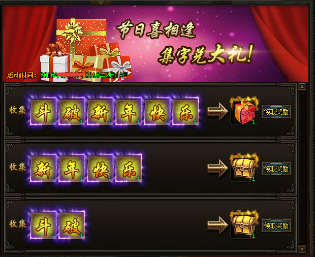 活动内容:活动期间,获得字帖“斗破新年快乐”即可领取丰厚奖品。